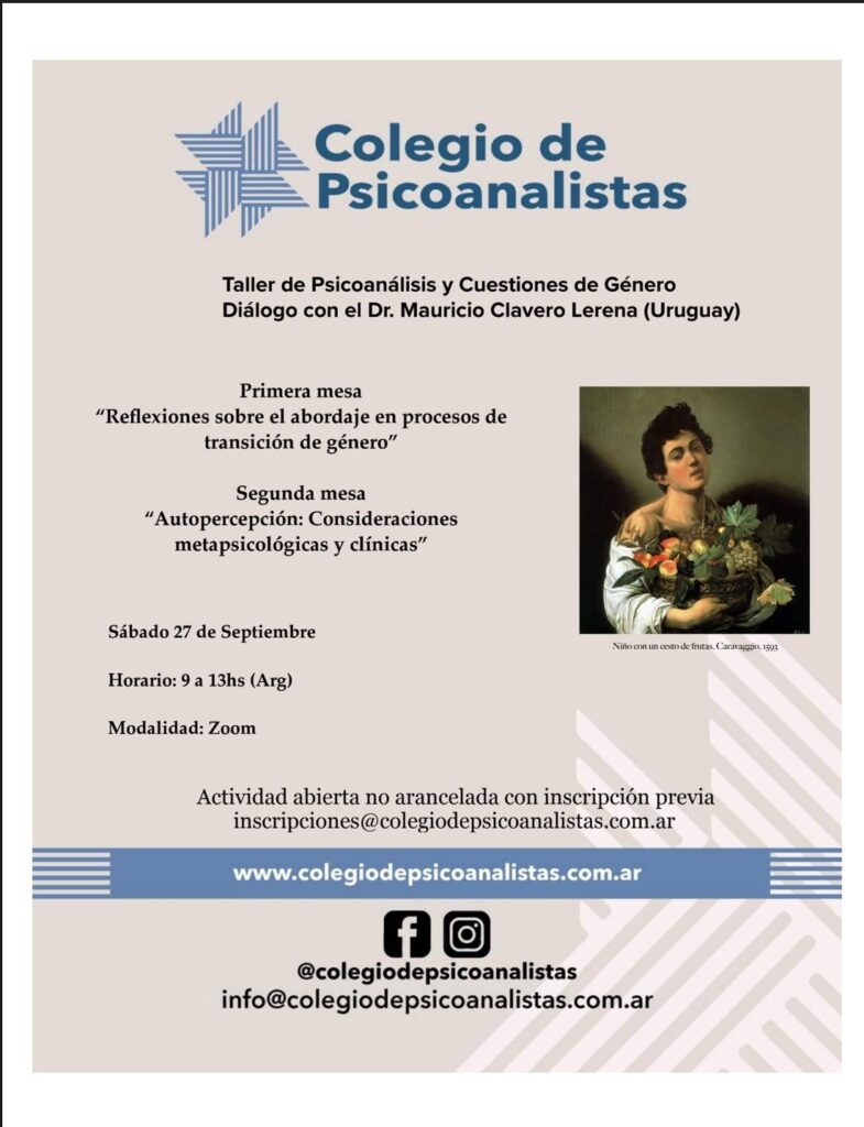 👉 Jornada virtual «Reflexiones sobre el abordaje en procesos de transición de género. Autopercepción: consideraciones metapsicológicas y clínicas»
